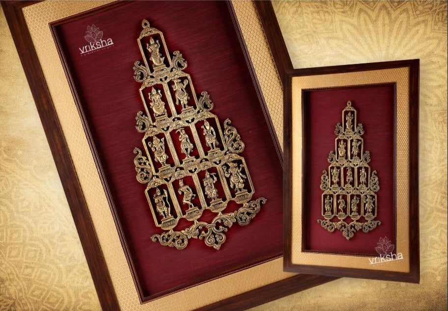 Large Dasavataram in Brass on Silk Frame - W 24 in x H 36 in