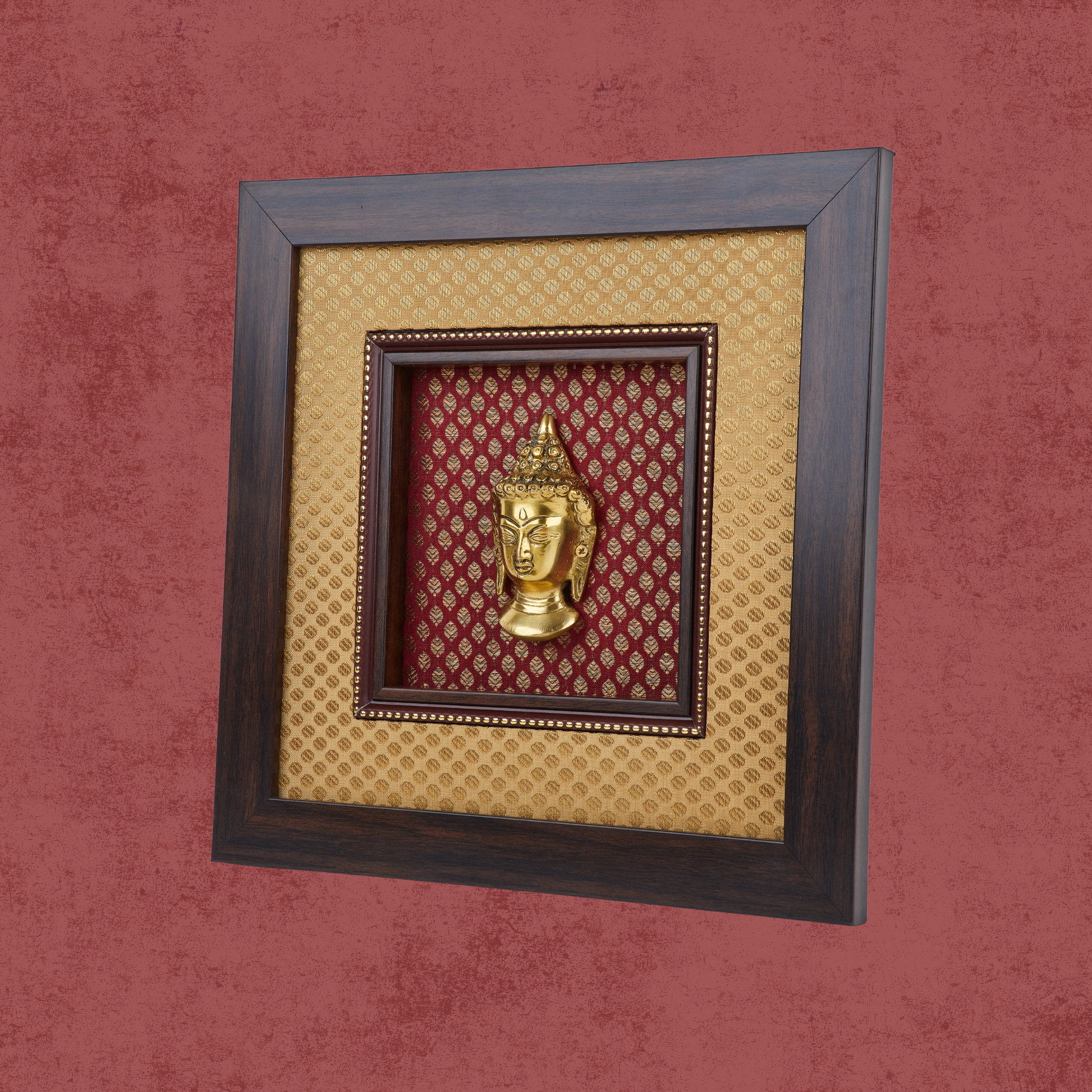 Buddha Framed on Raw Silk & banaras brocade - W 12 in x H 12 in