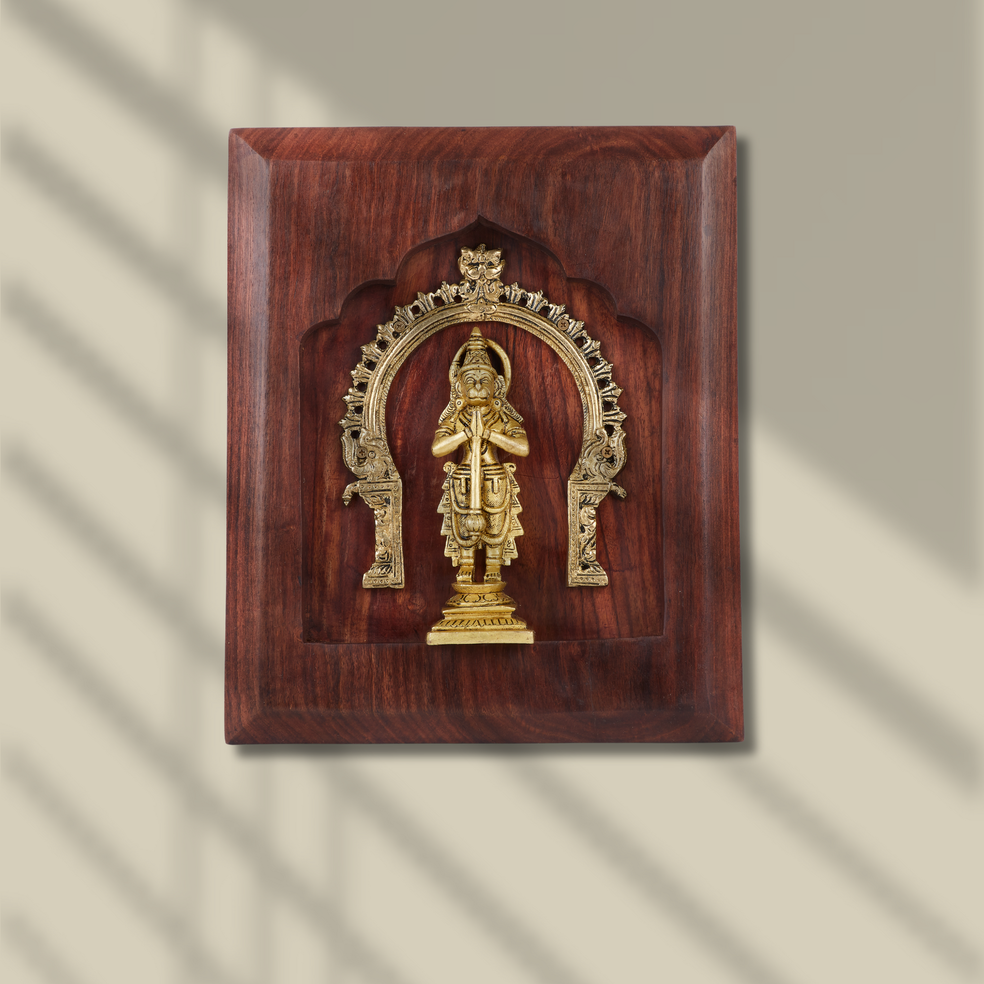 Hanuman Brass Idol with Prabhavali – Framed on Sheesham Wood