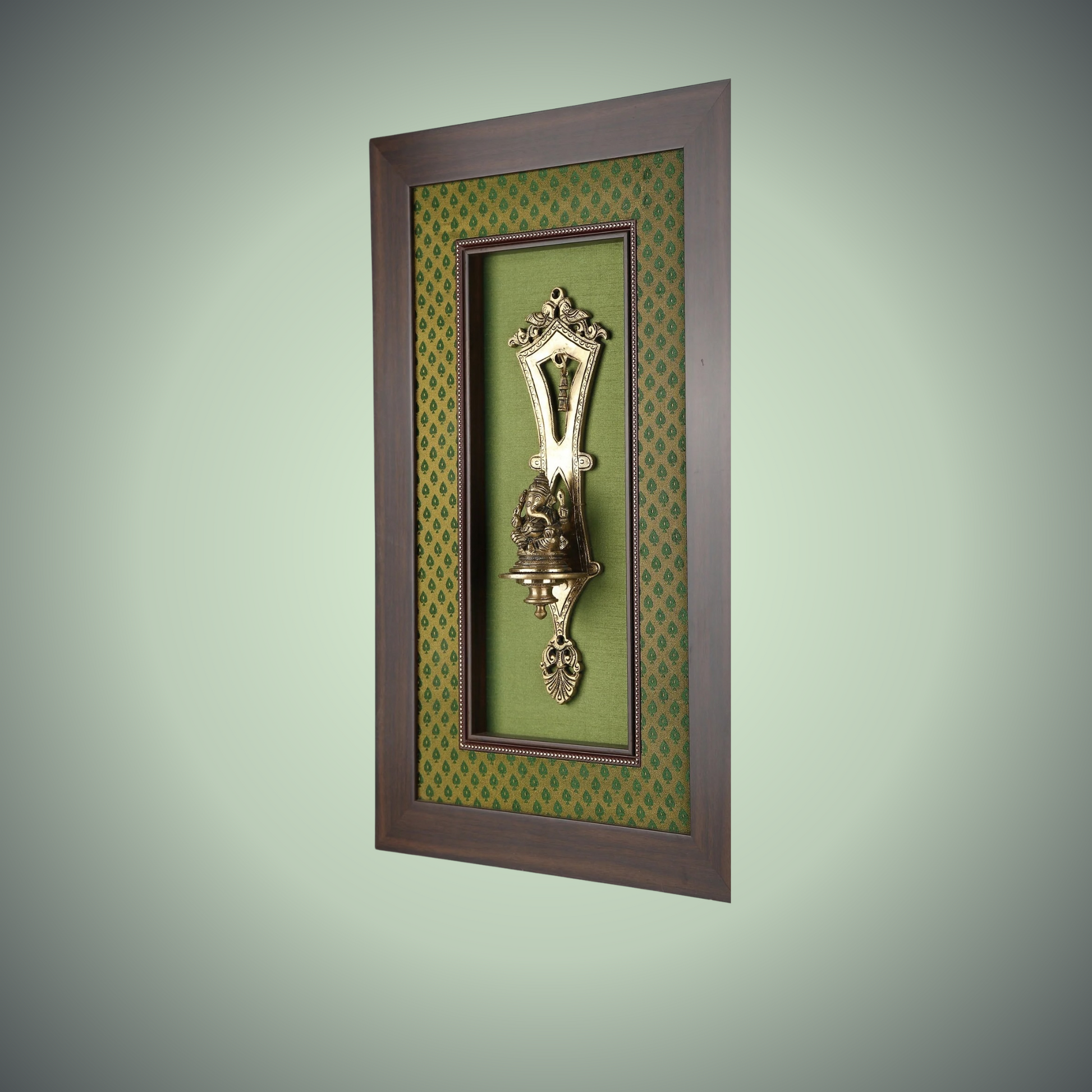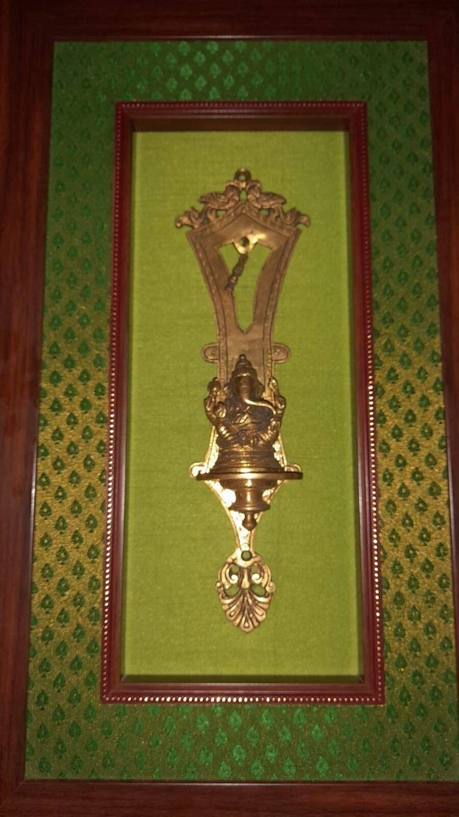 Lord Ganesha is worshiped first before starting anything new. Lord Ganesha clears the obstacles and paves the way for us to move forward in life. This unique brass idol framed on a rich raw silk backdrop would fit right into any interior as a beautiful piece of home decor. Ideal for a Puja Room, but would also be great as a solo art piece anywhere in the house. Makes a great gifting article for friends, relatives and colleagues. Perfect for festivals like Diwali and New Year, Occasions like House Warming, Birthdays and Anniversaries.