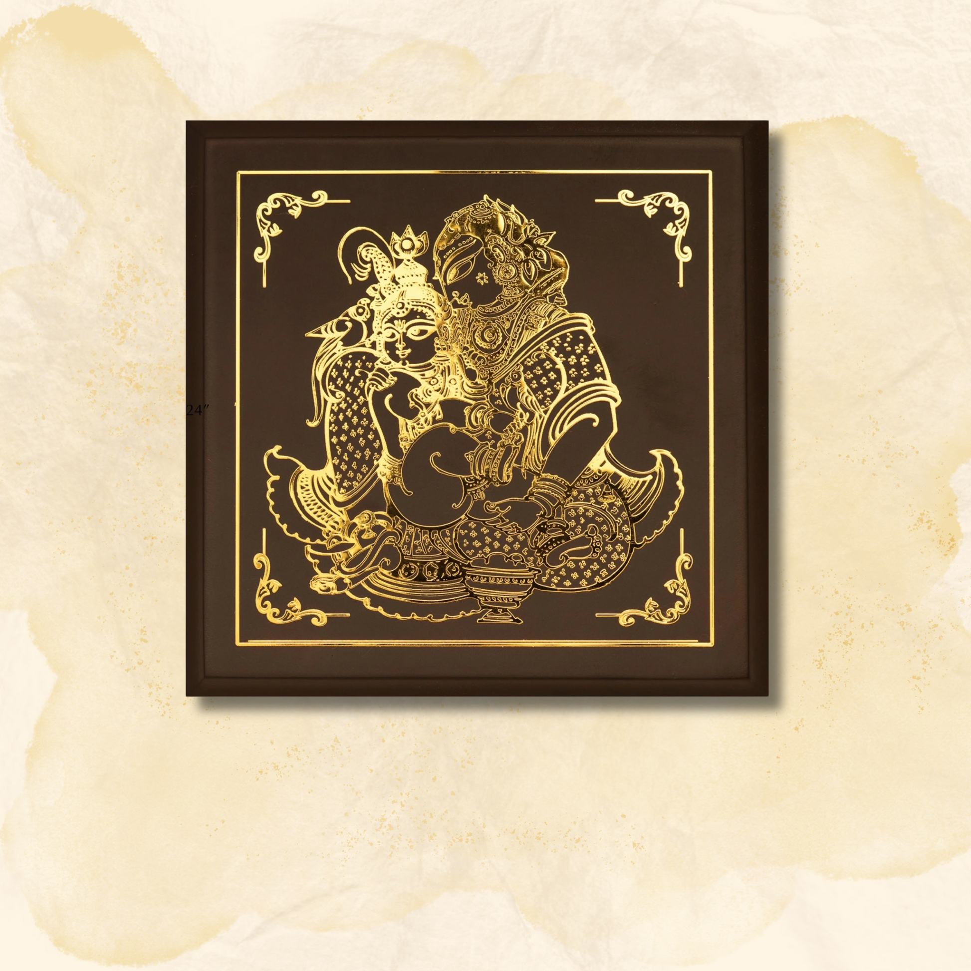 "Yashoda Krishna" This unique 24 carat gold coated metal art on wood, would fit right into any interior as a beautiful piece of home decor. The subtle use of wafer thin gold in a fine and intricate manner gives it a rich and sophisticated quality. Makes a great gifting article for friends, relatives and colleagues. Perfect for festivals like Diwali and New Year, Occasions like House Warming, Birthdays and Anniversaries.