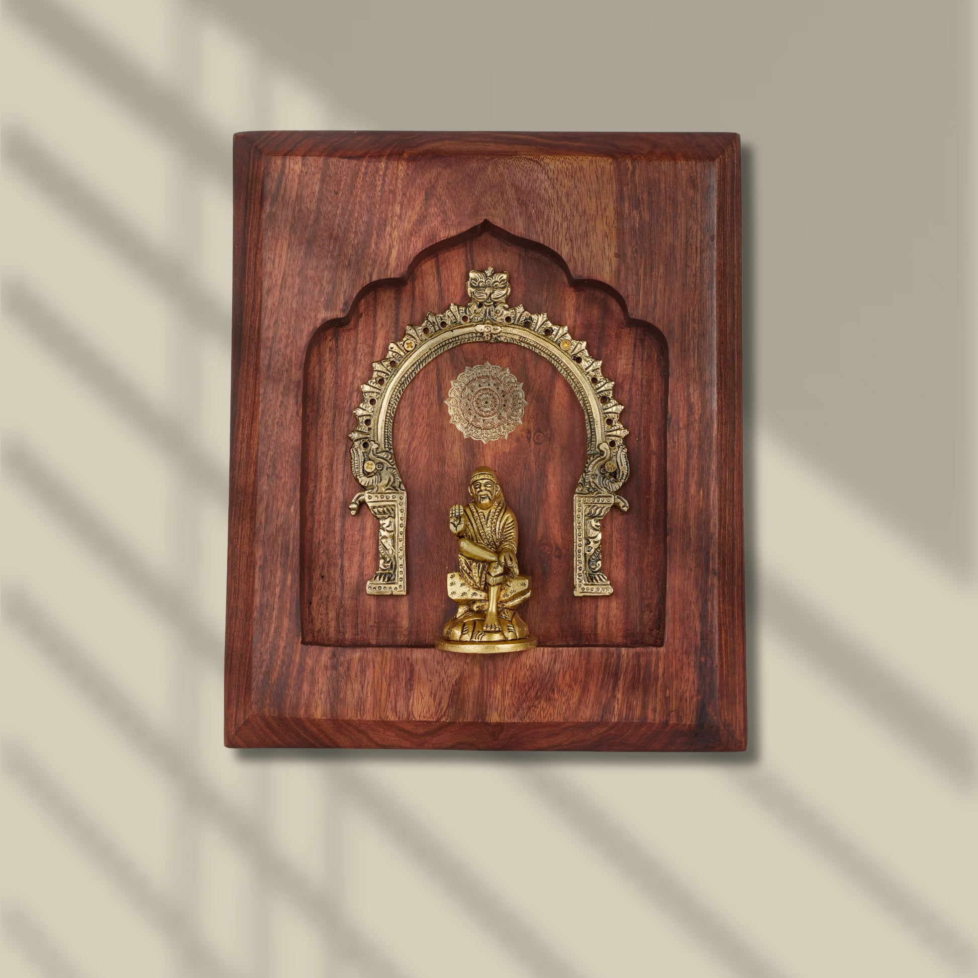 Saibaba Brass Idol with Prabhavali – Framed on Sheesham Wood